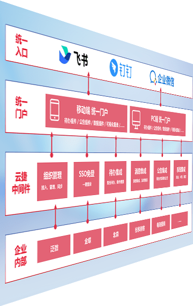 对协作平台提供支持服务,,,支持企业应用与协作平台对接,,,,包含组织同步、、消息集成、、待办集成等。。支持目前主流的协作平台:钉钉、、、、企微和飞书。。。